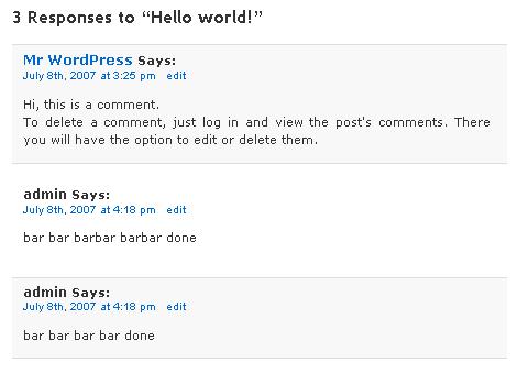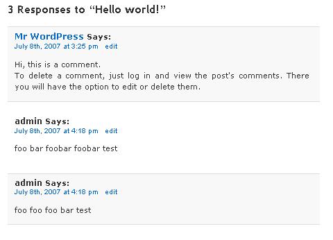Let’s write a very simple plugin – a word filter for your comments. What is a word filter? It’s a script that will replace occurrences of one word with another. You can use word filters to censor obscenities from your comments, or just mess with your readers by swapping words like male and female, straight and gay, or perhaps if your blog is popular enough to attract the First Poster change “first” to “I’m a looser”. In my example I will try to switch foo into bar and test into done.