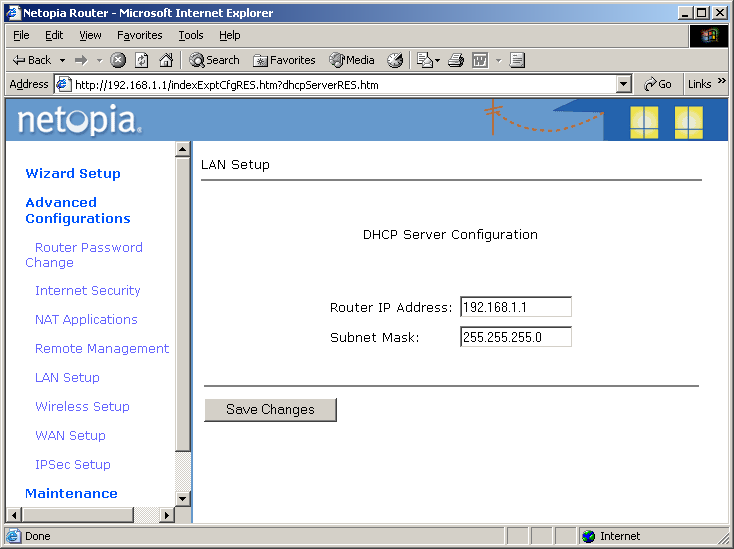 This will definitely force you to reboot the router. After this you won’t have internet connectivity on that machine. That means it’s working. Your Netopia just became a DSL modem and you will need a PPPoE client to use it. Disconnect it from your machine, and plug it into the Sonicwall’s WAN port.