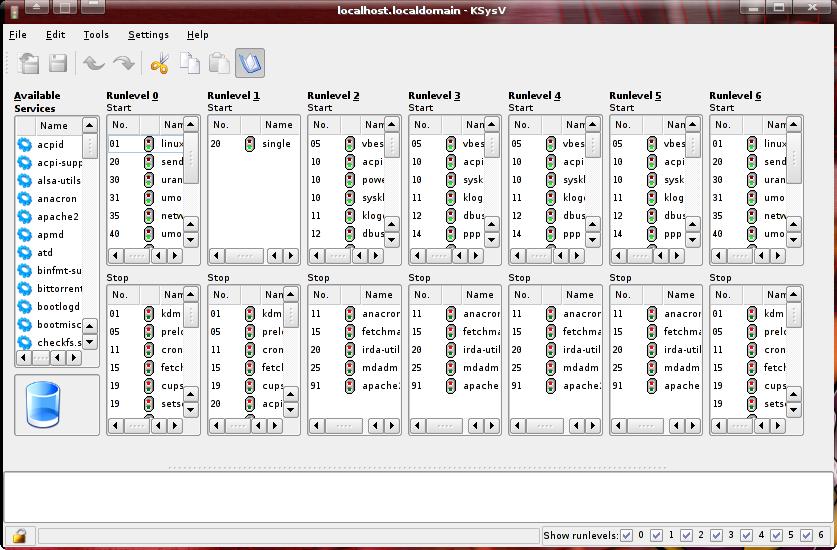 Here you can actually edit the K and S records for each app on each run level. Now, KSysV might have some a bit more functionality, but sysv-rc-conf is simple, powerful and easy to use.
