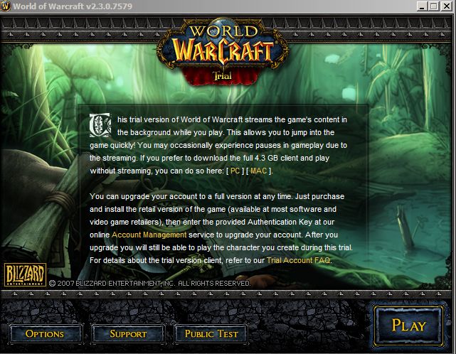 The full installable trial is around 4GB in size – I briefly considered downloading it, but I don’t see a reason for now. The streamed version is working perfectly for me. In fact, I’m not even sure why Blizzard insists on people buying a full version of the game – they could just let people install the streamed trial version, and continue using it after the 10 days provided they pay the monthly fee. They make most of their money on subscriptions, no?