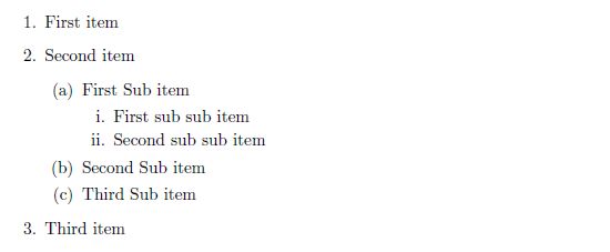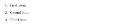 For example, LaTex has 3 basic list environments: enumerated list, itemized list and description list. Sounds familiar? It should because these correspond to the ordered list (<ol>), unordered list (<ul>) and definition list (<dl>) in HTML. Let me show you some quick examples – these should be self explanatory.