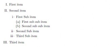 Here is how it would look – note that the counter type changes automatically so that the first level is numbers, second level is characters, third level is roman numerals and etc: