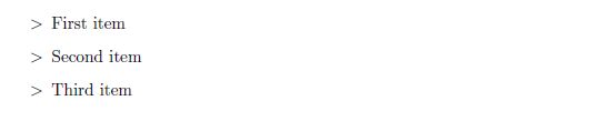 This will change the default bullet to \textgreater which prints out the greater-than symbol like this: