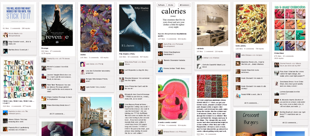 But if you are not a cook or a fashionista, Pintrest still has a lot to offer. Case in point, here is how my Pintrest front page looks once I log into the system and the feed is populated based on the content supplied by the people I follow: