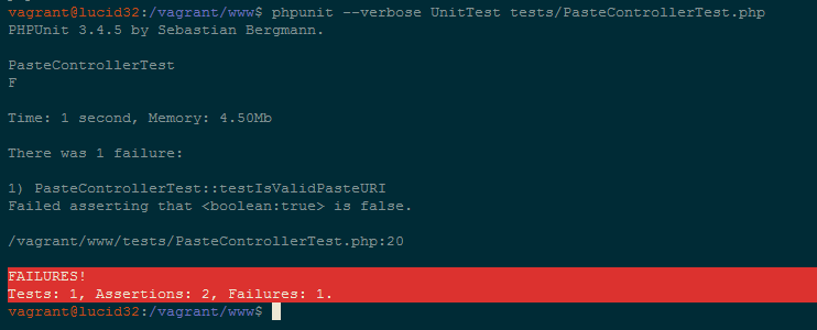 phpunit UnitTest tests/PasteControllerTest.php