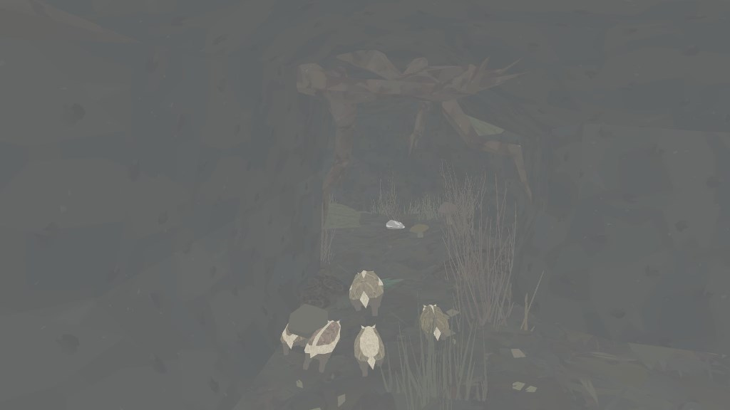 To add insult to injury, once you get out of the cave you can just drop food anywhere on the ground and your pups will find it with no problems. Apparently each pup has it’s own food intake counter, and when they get hungry their fur fades and becomes lighter. I only know this because I read it online. None of my pups ever faded. The food was simply so plentiful, and the path-finding skills of the pups were so bad that simply dropping the food on the floor where I found it kept all my pups satiated throughout the game. Every few steps I would find a turnip, a carrot some berries, a rat, a frog or an apple.