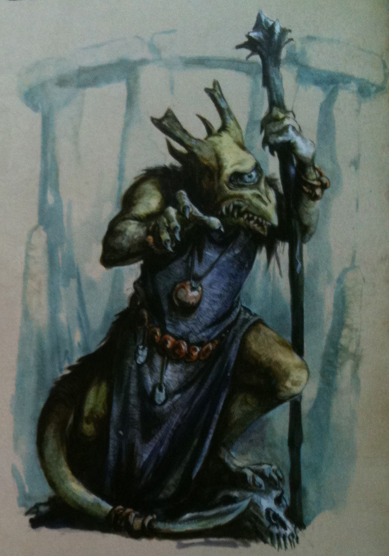 Their society is matriarchal and divided into a strict caste system. The rulers are powerful female Mages known as Meargh, aided by Dirach, the horned priestly caste which communes with demons and more mundane magic. Below them are the Fianna – the noble born Fimir blessed with dagger like, razor sharp blade growths on their tails. They get first dibs on food, get access to best armors and equipment and tend to grow to the largest size. They command squads of rank and file Fimm Warriors whose tails culminate in barbed clubs and whose main role is to protect the tribe. The lowest caste are Shearl – the permanently hunched over workers with smooth tails and subservient attitude.