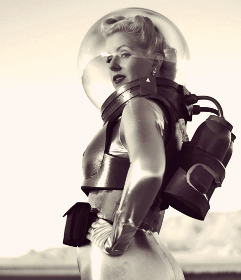 The setting is based on retro pulp SF from the 40’s and 50’s. Sleek rocket ships with giant fins, space suits with bubble helmets, ray guns, giant computers that take up the entire room, programming done on punch cards or patch cables are the core aesthetic.